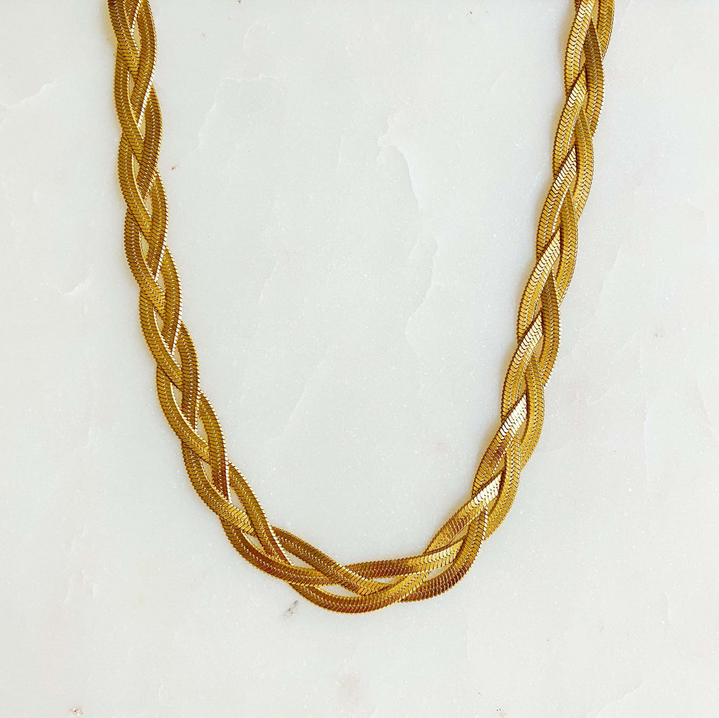 3 of herringbone chains are beautifully braided. Looks trendy and classy at the same time.