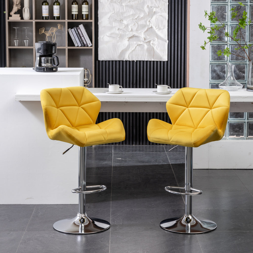 Dimensions: 20.5"W x 25.6"D x 35-43.25"H. Seat dimension: 20.5"W x 14.25"D. Seat height ranges from 25.5" to 33.75". Chrome plate diameter: 20.6". Seat back width: 15". Seat back height: 15.5".