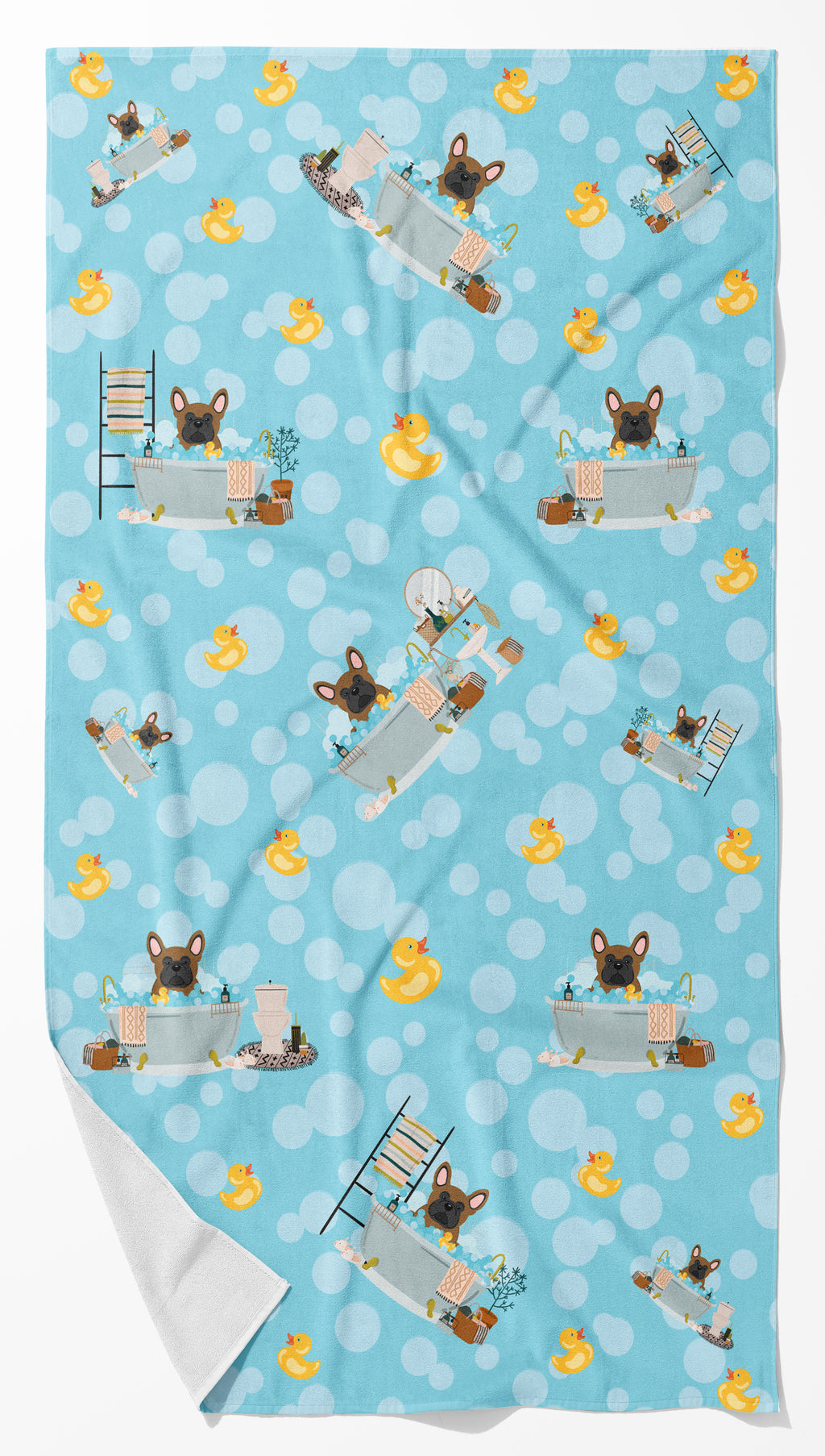 Bath Towel Large featuring breed specific French Bulldog artwork. Indulge in the fusion of comfort, style, and luxury with Caroline's Treasures Oversized Plush Fitness Guest Bath Towel. Exquisitely crafted from select materials, this 24" x 42" towel weighs a plush 6.2 lbs per dozen, promising both opulence and durability. Showcasing a full-color edge-to-edge design, it enhances your bathroom decor, serving as both a functional essential and a stylish accessory. Crafted with sheared microfiber polyester face, the top of the towel offers unparalleled softness and longevity. The advanced fabric technology facilitates vibrant, fade-resistant full color printing of our artwork, keeping the design vibrant wash after wash. The other side reveals white cotton terry loops on the back of the bath towel, known for excellent absorbency and swift drying. This dual fabric construction assures efficient moisture wicking and quick drying time. More than a bath towel, its quick-drying feature and ample size make it a versatile companion for the gym, pool, or beach. Use the soft microfiber side for lounging or yoga, and the absorbent terry side for drying off after a swim or workout. As a testament to Caroline's Treasures commitment to quality and style, this Oversized Bath Towel harmoniously blends aesthetic appeal and practicality. It's an excellent choice if you're looking to upgrade your bathroom textiles or need a plush workout companion. Ideal for gifting or personal use, this bath towel encapsulates superior craftsmanship, design, and performance. Experience this perfect blend of luxury and utility today.