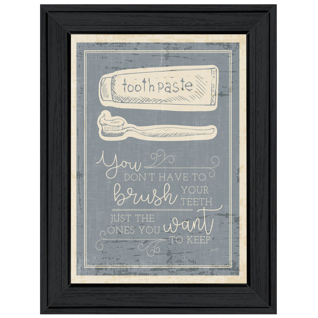 MMD358-405 "Brush Teeth" by Misty Michelle. This decorative black framed print 15x21 states "you only have to brush the teeth you want to keep"! This framed art is totally American made. The surface of the art is coated with a fade resistant texture which gives it a canvas-like appearance. No glass is necessary. Arrives ready to hang. To view a 2-piece vignette, including this print, please search: V588-405•Print has fade resistant surface texture, no glass is necessary•Woman Owned Busines (WBE)•Arrives ready to hang, no additional hardware needed on item•individually hand crafted by skilled American workers•frame mitered with precision equipment
