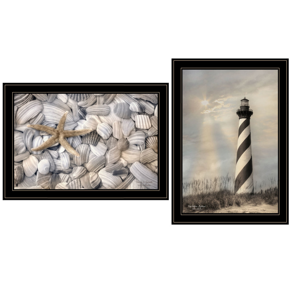 VLD402-704G "Cape Hatteras Lighthouse & Sea Shells" by Lori Deiter. Two black 21x15, 15x21 framed print reminds you of your visit to Cape Hatteras; the lighthouse and the sea shells. This framed art is totally American made. The surface of the art is coated with a fade resistant texture which gives it a canvas-like appearance. No glass is necessary. Arrives ready to hang. •Women Owned (WBE)•Textured Artwork with a 'rolled on' acid free acrylic coating to create a canvas painting effect. No glass is necessary.•UV protectant coating protects artwork from fading.•Molding adds natural beauty to the framed art. Frame is keyholed for ease of hanging.•Frame is keyholed for ease of hanging.