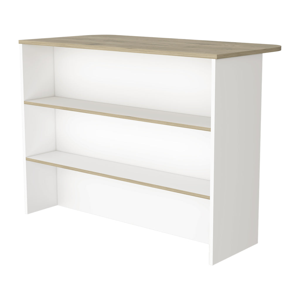 The Capwell Kitchen Island with 3-Tier Shelves is an excellent addition to your home. It's crafted with modern-style manufactured wood and designed with a chic white/light pine finish that will blend perfectly with any kitchen decor. It offers you a generous amount of workspace (47.2"W X 23.6"D) and three-tier shelves (10.8"W X 8.2"D), perfect for storing spices or kitchen essentials. Having the added space with this kitchen island not only provides plenty of extra room to prep meals or entertain guests but also gives you an easy place to store whatever you need right at your fingertips. Whether baking away in the kitchen or hosting dinner parties for friends, this gorgeous kitchen island will surely add class and functionality to any space.