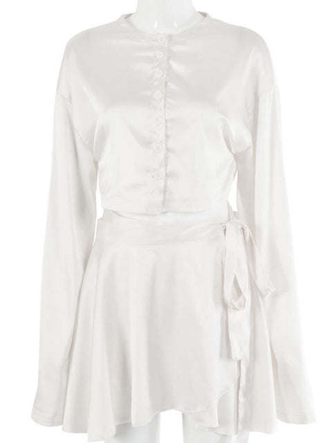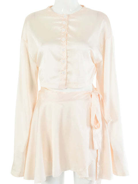 Looking for the perfect dress to wear to that upcoming wedding or special event? Well, look no further than the Fantoye Casual Satin Two Piece Dress Set For Women! This gorgeous dress set features a white o-neck button top with bandage detail and a mini pencil skirt. The sleek satin material is perfect for any formal occasion, and you'll love the way you look in this set! The best part? It's affordably priced, so you can snag this set without breaking the bank. So what are you waiting for? Order your Fantoye Casual Satin Two Piece Dress Set For Women today!