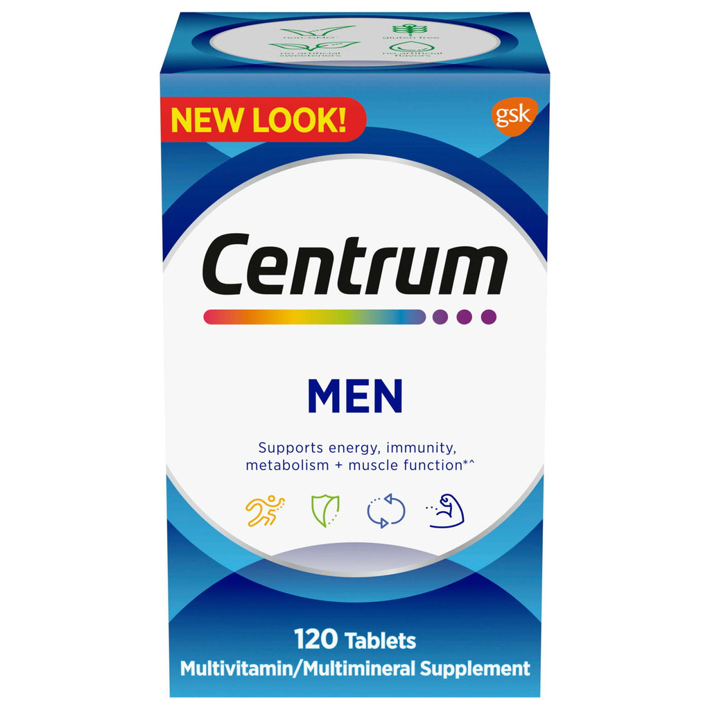 Centrum Multivitamin for Men a most complete multivitamin/multimineral supplement specially formulated for men. These multivitamins for men are made with key micronutrients; including B Vitamins to help support daily energy levels and to assist the body's metabolism of macronutrients; antioxidants (2) for immune support; Vitamin B6 and Vitamin D3 to help support muscle function (1). Centrum men's multivitamin tablets are Non-GMO (3) and gluten free to appeal to a variety of dietary needs. These men's multivitamin tablets feature a smooth coating that makes them easy to swallow. This bottle of 120 vitamin supplements helps support a healthy lifestyle for about four months; complete from A to zinc. Simply take one Centrum men's vitamin daily with food to provide your body with essential vitamins and minerals for energy; metabolism and immune support (1). Help support full body wellness with Centrum; the #1 doctor and pharmacist recommended brand.