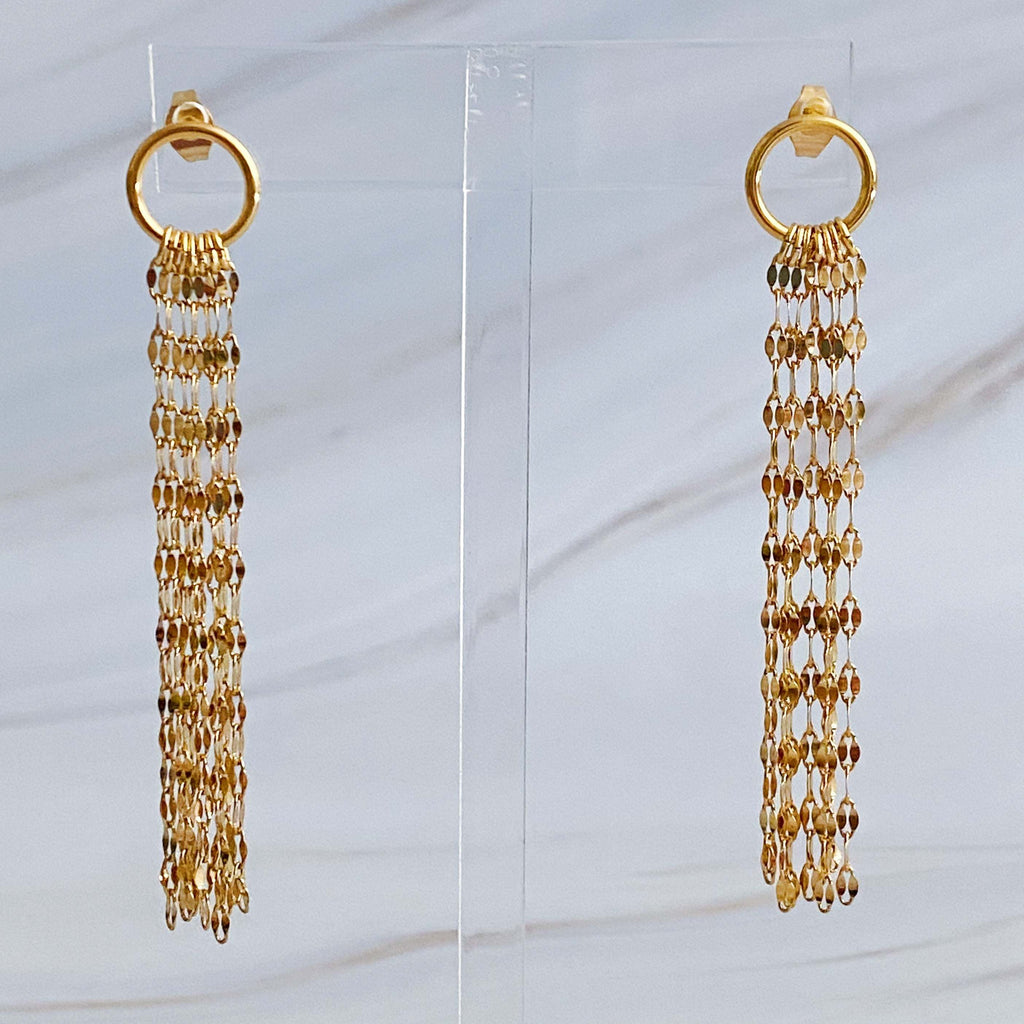 These Chain Drape Dangle Earrings are a beautifully simplistic addition to any outfit. The delicate draping design adds an elegant touch, which makes them perfect for those seeking a timeless and versatile accessory.