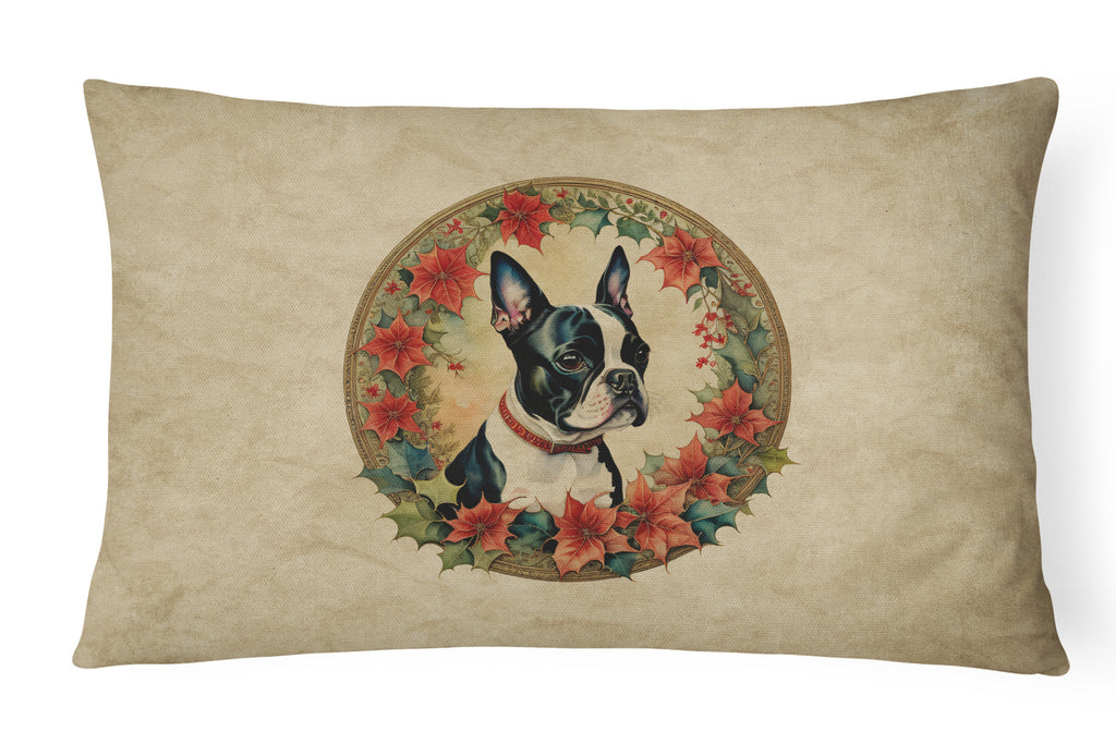 Throw Pillow featuring breed specific Boston Terrier artwork. Celebrate Christmas with this Christmas Pillow. Embrace the fusion of comfort and style with Caroline's Treasures Fabric Decorative Pillow. This 12x16 inch outdoor pillow is designed to complement your patio furniture, adding a splash of color and artistry to your outdoor setting. Constructed with a 100% Polyester Fabric pillow sham filled with a plush pillow form, this cushion is as comfortable as it is durable. Our outdoor pillow utilizes a novel fabric, meticulously woven for enhanced water resistance. This soft canvas material is equally suited for your indoor couch as well as outdoor settings such as the patio, porch, or veranda. To ensure enduring vibrance, we employ colorfast dyes resistant to fading even when subjected to weather elements. The making of this pillow involves the delicate sewing together of three fabric pieces to create a sham, into which a polyester insert is carefully placed. The result is an overstuffed pillow that tenaciously holds its shape. With both the sham and the pillow insert crafted in the United States, these handmade pillows are a testament to superior local craftsmanship. Note that as these pillows are handmade, sizes may slightly vary, enhancing their unique appeal. Enjoy comfort in style with Caroline's Treasures Fabric Decorative Pillow.
