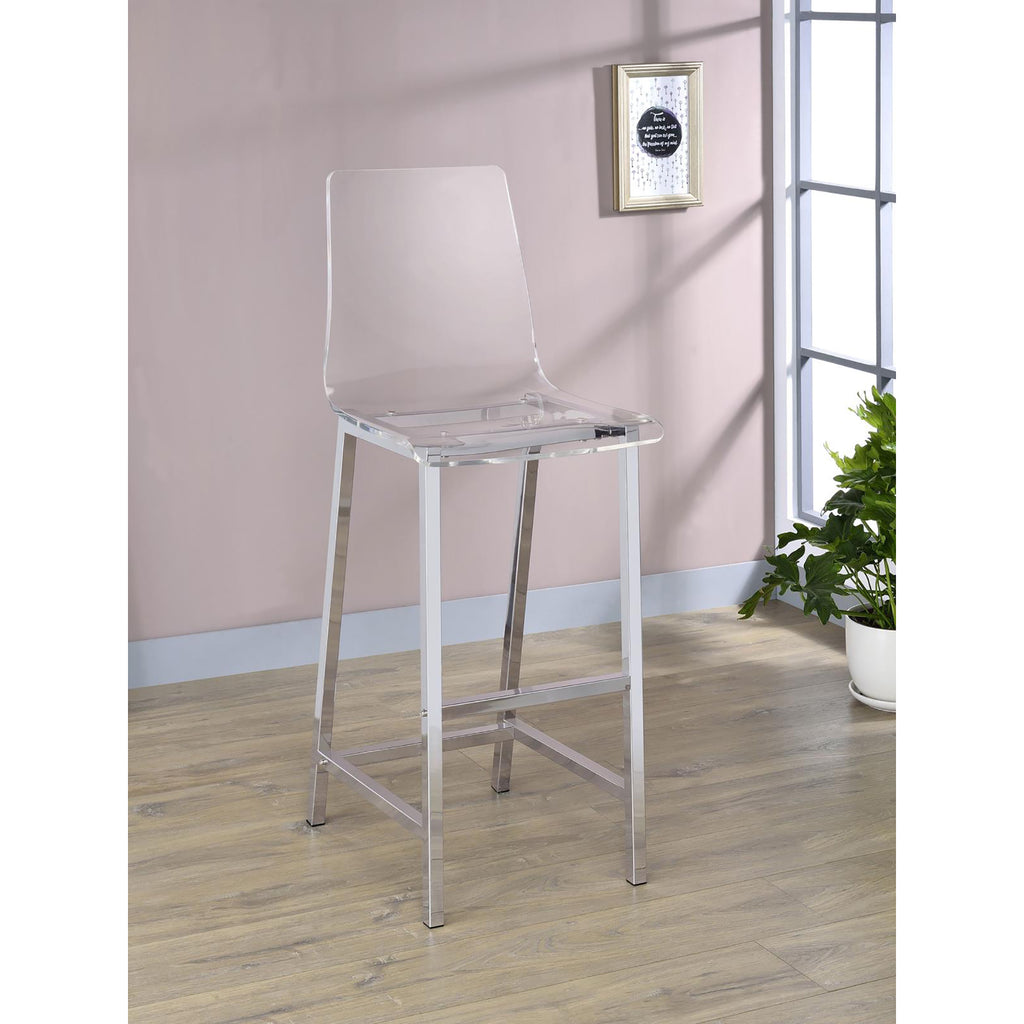 The stool's legs are finished in gleaming chrome, providing a polished and sophisticated look that balances the overall striking appearance