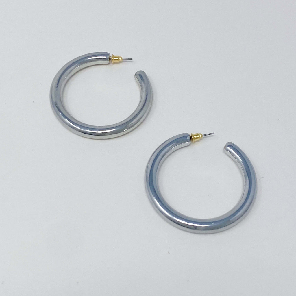 Metallic finish tube hoop earrings. Fun colors, lightweight, great size for everyday and more!