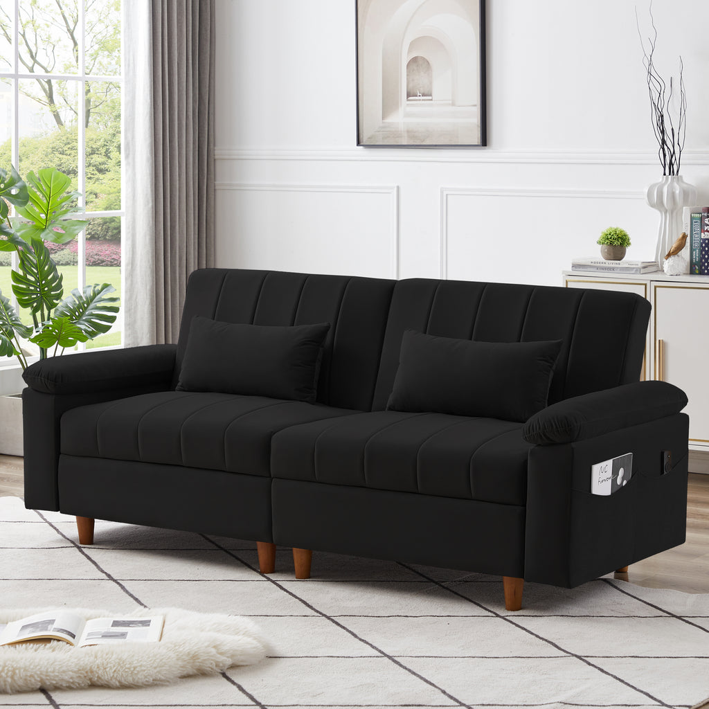 futon loveseat3. The hidden storage box design can store various small items for free storage, making full use of the space under the seat and not easily collecting dust. It is more practical and makes the home look tidier. It is also equipped with 2 large side pockets, which are convenient for storing TV remote controls, mobile phones, magazines, keys, etc. 4. Pull down the backrest to make a bed, easy and simple to operate, truly One person can easily transform into a bed