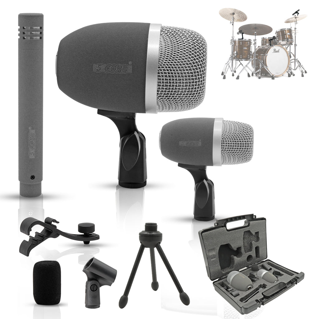 5.1 x Kick bass drum microphone, 1 x toms/snare drum microphone, 1 x Overhead condenser microphone, 1 x Microphone clamp, 1 x Mic Holder, 1 x Mini Tripod Stand, 1x Sponge, 1x storage case.