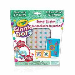 The glitter is contained in each dot-noo spills or sticky glue Comes with 42 glitter dots, 12 plastic stencils, 5 sticker sheets and 1 clay tool Peel your dazzling design then proudly stick and display