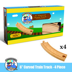 This is a great set of four 6" curved wooden track pieces perfect for adding on to your current Conductor Carl train set. These are four interlocking pieces of track. They are not only compatible with your Conductor Carl but also your Thomas the Train engines and cars. These four pack add on packs come in four different styles: 6" straight, 6" curved, 3.5" straight, and 3.5" curved. Grab one of each for the ultimate toy train fun!