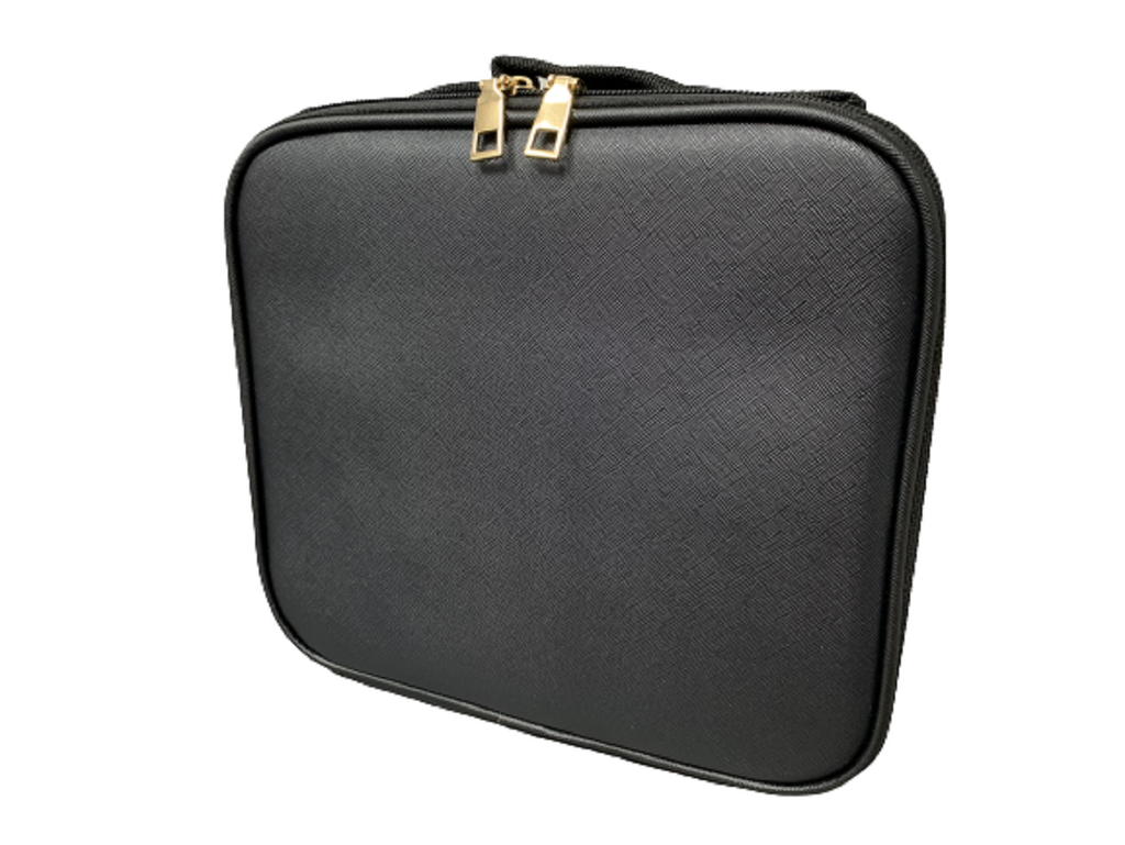 Customizable interior partitionsPremium wipe-clean PU leatherEVA high-density shockproof foam interior4 elasticized pockets in the lid for brushes and other taller itemsWipe-clean cover to protect items in the elasticized pocketsZippered pocket on the inside of the lid for additional storageSmooth, color-coordinated zipperSoft, wide handleLarge Capacity Size: 10'x9.5'x3.5'