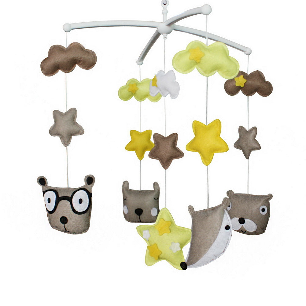 Each package contains a Baby Crib Mobile Bed Bell Holder Arm Bracket and a Wind-up Music Box and toys. This handmade baby crib mobile plays light music to help your baby easily fall asleep. Easy operation and convenient to use, it will rotate while playing music. Keep baby calm and happy, with this mesmerizing mobile. It is an essential product for baby and nursery. The toys are made from nonwoven fabric. Please note: Can be customized, please contact us about the colors you like, otherwise we will ship the item in original color to you. Each mobile plays Only One soothing pure and light song, it is Brahms Lullaby or Mozart Lullaby(random).