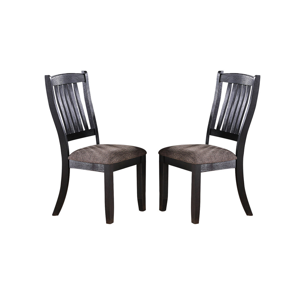 Classic wood-crafted American-style dining chair. This chair is designed to cater to dinner parties or large family gatherings. Features dark coffee fabric upholstery it cushions padded with high-density foam to keep you comfy all day long. Perfect for bigger groups and special occasions like Thanksgiving. Sold in a convenient set of two.