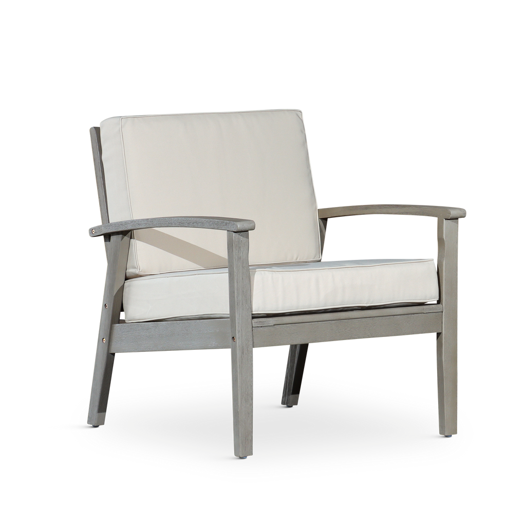 Deep Seat Eucalyptus Chair, Driftwood Gray Finish, Sand Cushions
