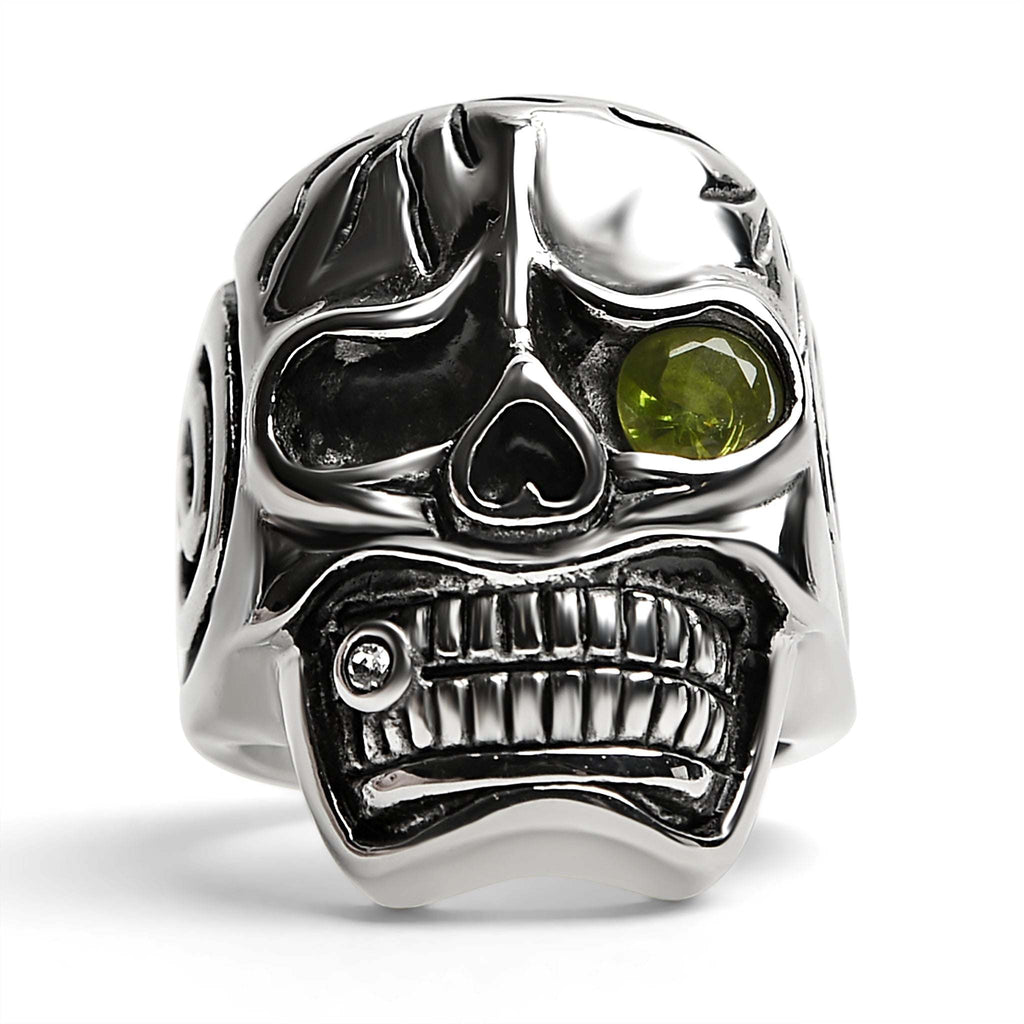 Description: Introducing the "Detailed skull with Green CZ eye stone stainless steel ring"! This one-of-a-kind ring is made with high-quality stainless steel and features a beautiful Green CZ eye stone. The intricate detail on the skull is sure to turn heads; and the Green CZ eye stone adds an extra touch of luxury. Whether you're looking for something unique to add to your favorite jewelry collection or a special gift for someone special; this ring is sure to impress.