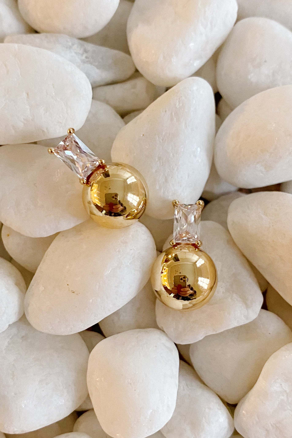 Gorgeous combination of princess cut sparkling Cubic Zirconia with classy golden ball! So simple and pretty.