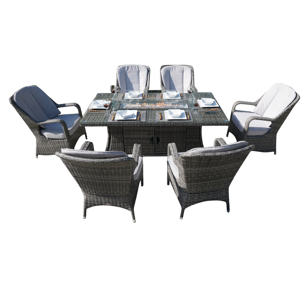 One gas fire-pit dining set=one rectangular table+six chairs with cushions