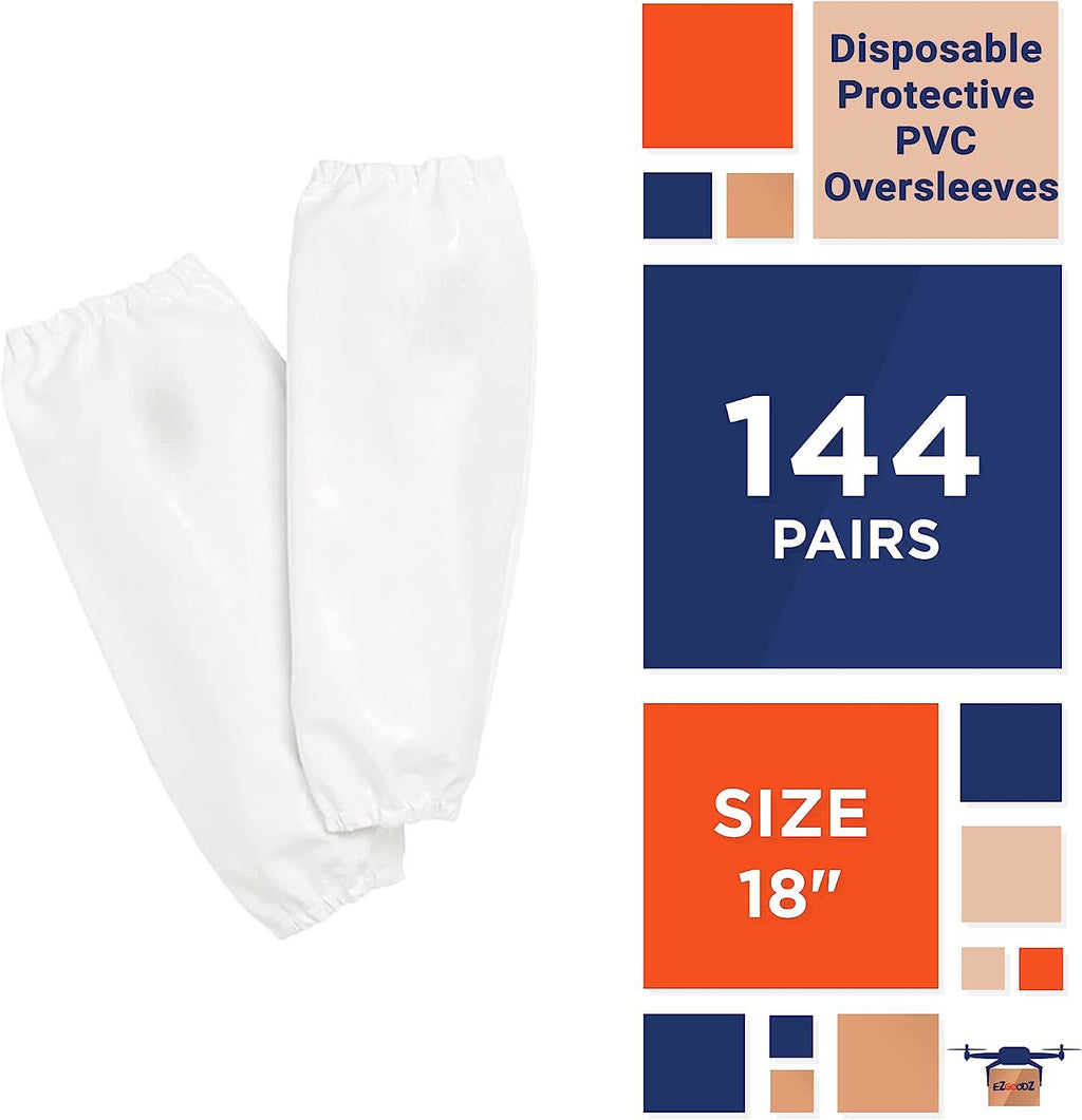 Disposable Vinyl Oversleeves 18" in Bulk. 144 Pairs of Purple Regular PVC 8 mil Arm Covers with Elastic Wrist & Elbow. Pack of 288 Waterproof Protective Sleeves for Food Service; Industrial.