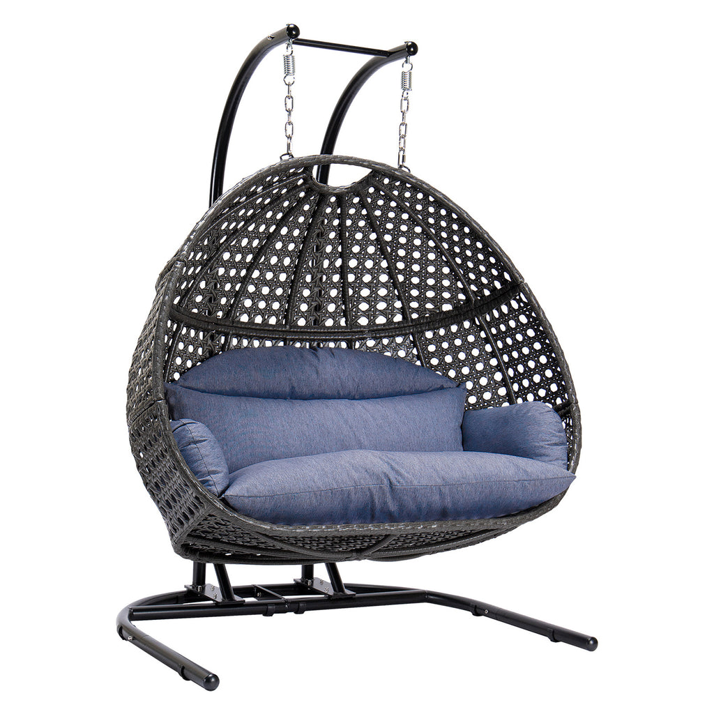 (1) X-Large: This Double Swing Egg Chair Overall Dimensions 43.3"D x 57.48"W x 76.77"H ; Seat 57.48''L x 29''W x447.24''H; 550 lbs Capacity.