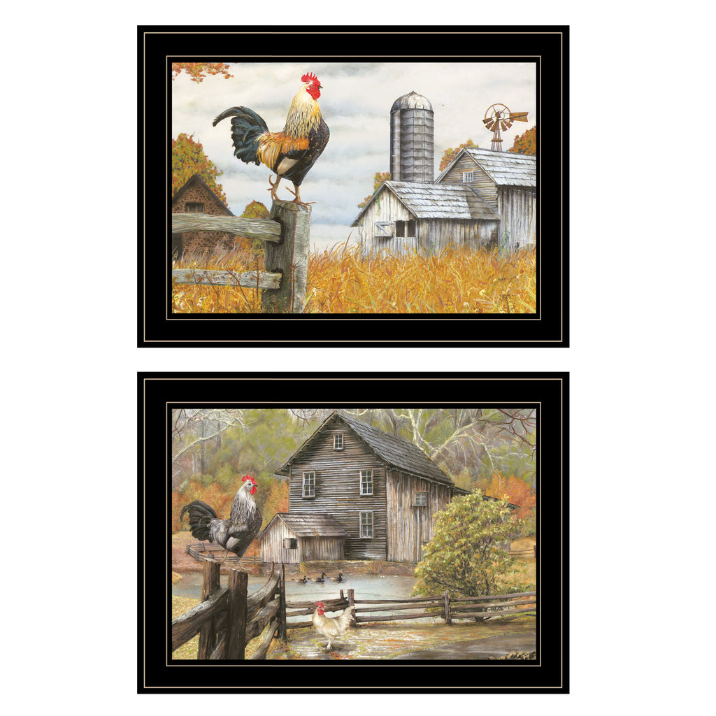 V475-704G Down on the Farm, by artisan Ed Wargo. This decorative black framed vignette of 2-14x18 prints of a vintage farm setting; old windmill, old farmhouse, milk house, rooster and pond. Framed prints arrive ready to hang. Prints are textured-no need for glass.•TEXTURED ARTWORK with a 'rolled on' acid-free acrylic coating to create a canvas painting effect.•UV PROTECTANT COATING protects artwork from fading. No glass is necessary.• MOULDING adds natural beauty to the framed art. Frame is keyholed for the easy hanging.•THIS FINE HOME DECOR piece made in the USA by Woman Owned Business (WBE) is a perfect gift for a friend or relative.