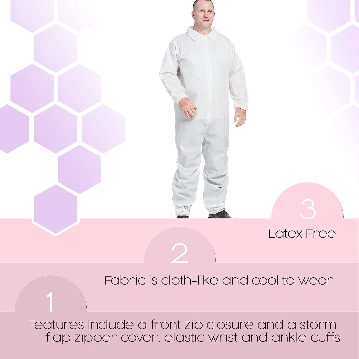 Dukal Disposable Coveralls 3X-Large. Pack of 5 White Hazmat Suits Disposable. Polypropylene Protective Suits. Painter Suits Disposable with Long Sleeves, Zip Closure, Elastic Wrist, and Ankle Cuffs