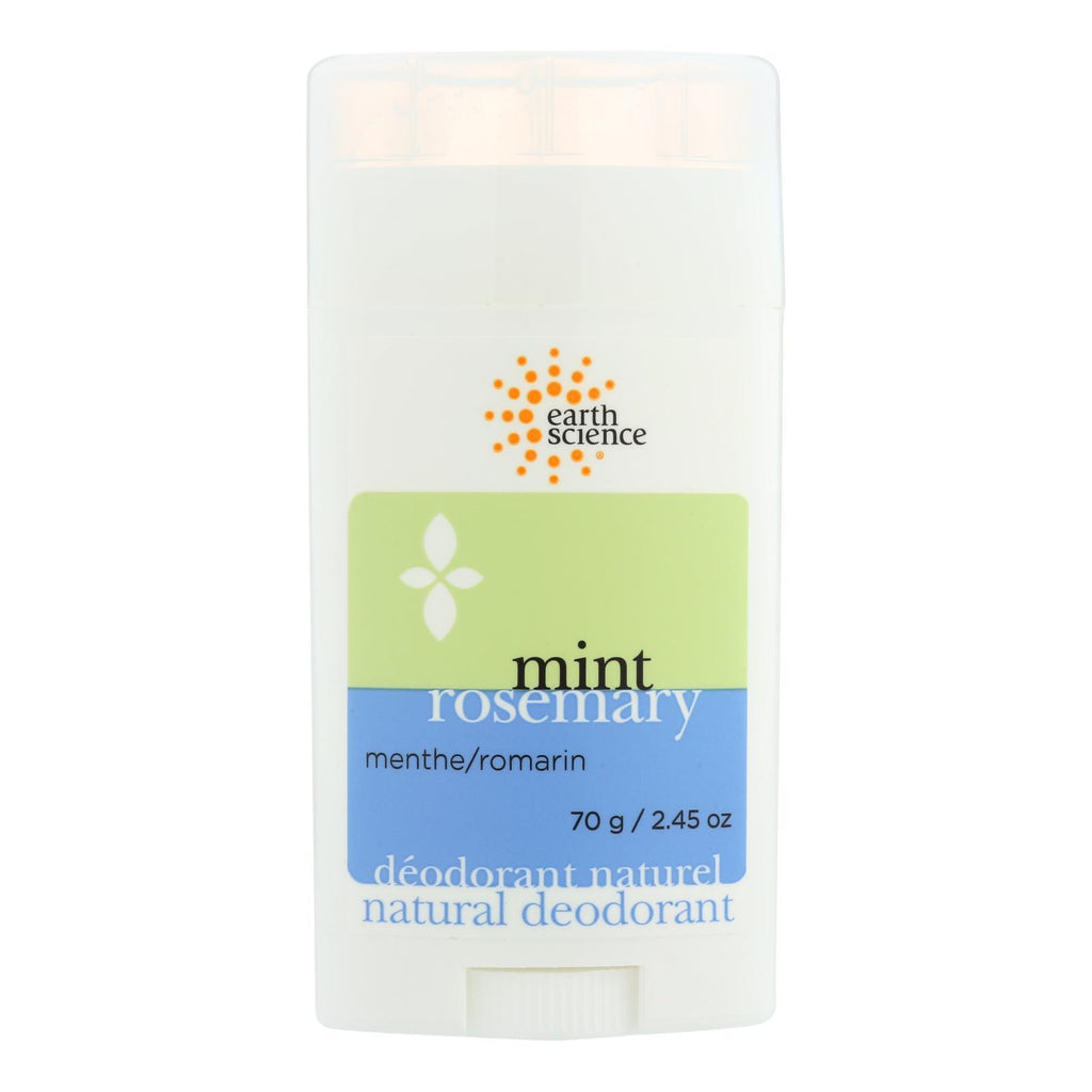 Earth science deodorant, mint rosemary is a gentle, effective and long-lasting deodorant that controls odor all day without aluminum or other harsh chemicals. This natural, non-irritating deodorant has not been tested on animals and it does not contain parabens. Each stick of earth science deodorant, mint rosemary contains 70 g. Of product.