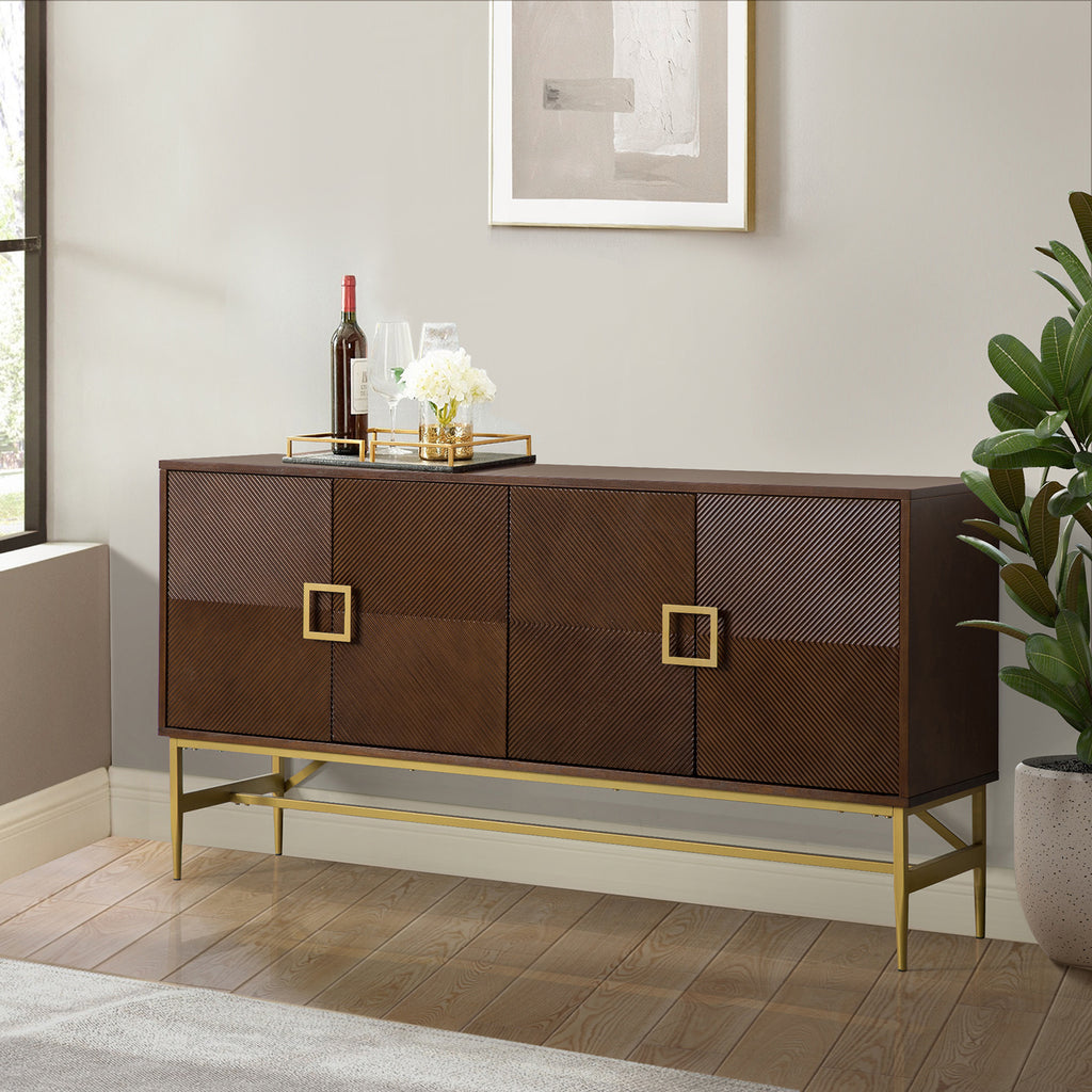 This modern sideboard's geometric patterned facade gives it texture and subtle depth, and interior shelves provide ample storage space for your essentials. No matter what room this sideboard is placed in, it is a striking accent.