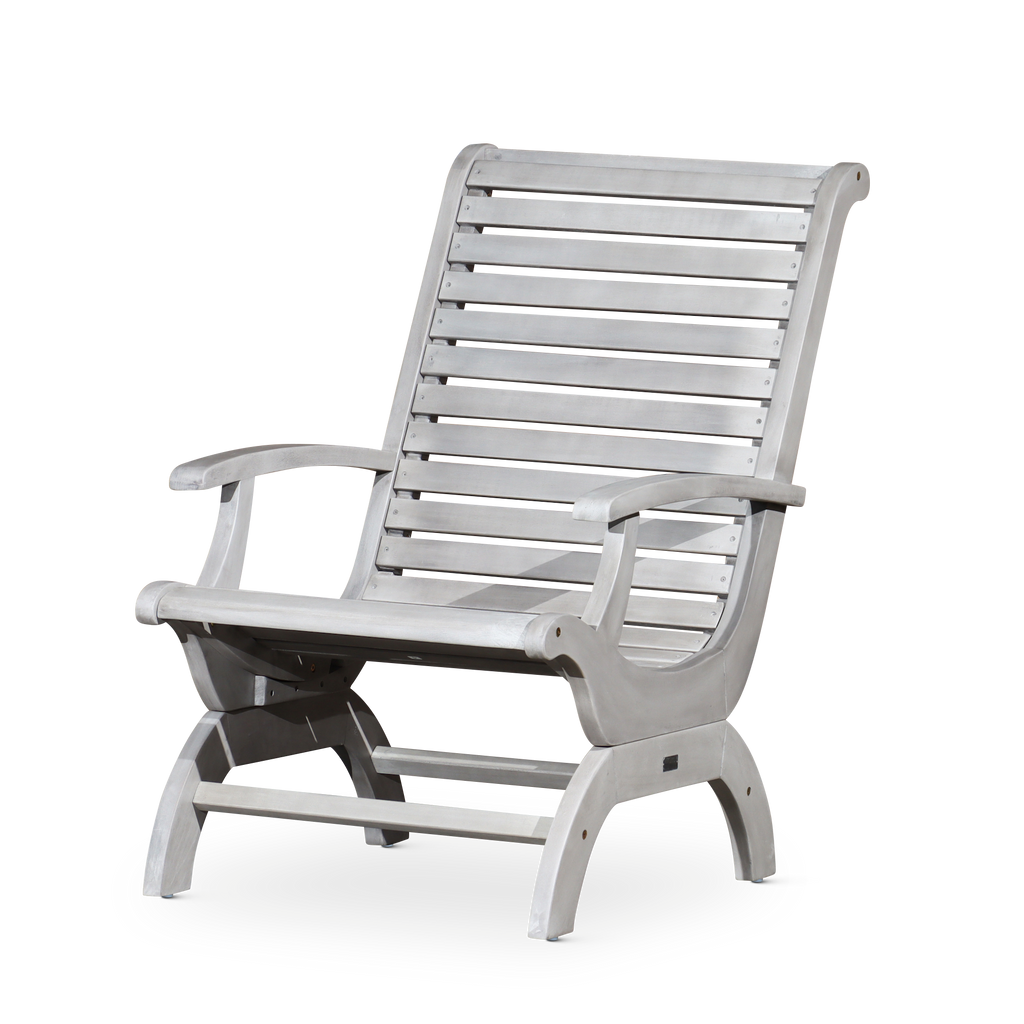 Eucalyptus Plantation Chair Silver GrayAdd character to your outdoor space. Our solid hardwood plantation chair is the piece to add pizazz to your porch. This beautifully crafted chair's sleigh design and wider seat and back provide a comfortable relaxing experience during those lazy summer days.