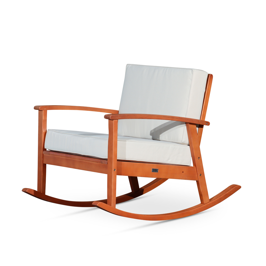 Eucalyptus Rocking Chair with Cushions, Natural Oil Finish, Sand Cushions
