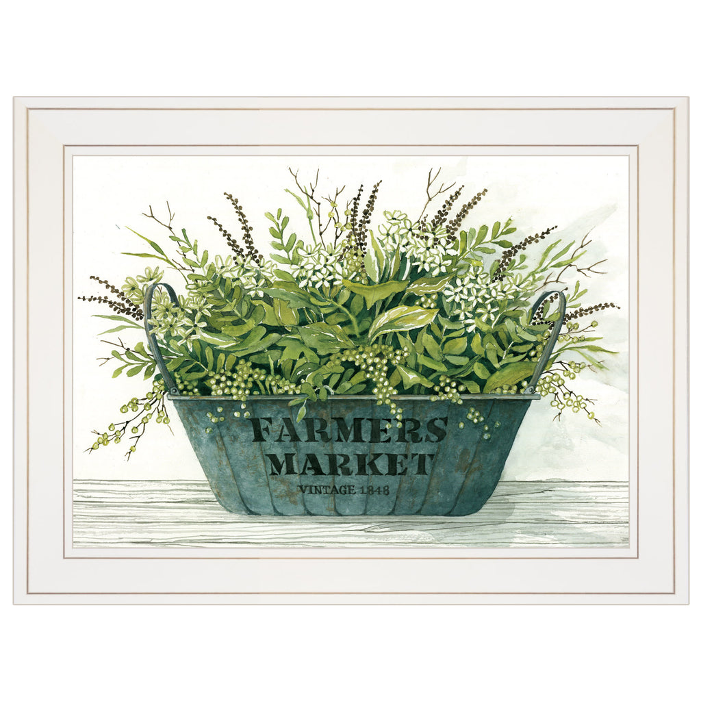 "Farm Market" by artist Cindy Jacobs. This decorative white framed print 19"x15" with a galvanized bucket of flowers; all neutral colors will enhance any farm table. Prints are UV coated (glass is not needed) and arrives ready to hang.To view a vignette of matching prints search: V502-226G•TEXTURED ARTWORK with a 'rolled on' acid-free acrylic coating to create a canvas painting effect.•UV PROTECTANT COATING protects artwork from fading. No glass is necessary.• MOULDING adds natural beauty to the framed art. Frame is keyholed for the easy hanging.•THIS FINE HOME DECOR piece made in the USA by Woman Owned Business (WBE) is a perfect gift for a friend or relative.
