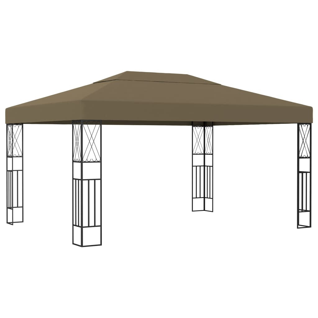 The vented canopy will keep the sun and rain from spoiling the fun at family gatherings, barbecues, afternoon picnics, and birthday parties. The gazebo has a sturdy steel construction with decorative cross shape details and a polyester roof. The canopy can be easily attached to the steel frame.