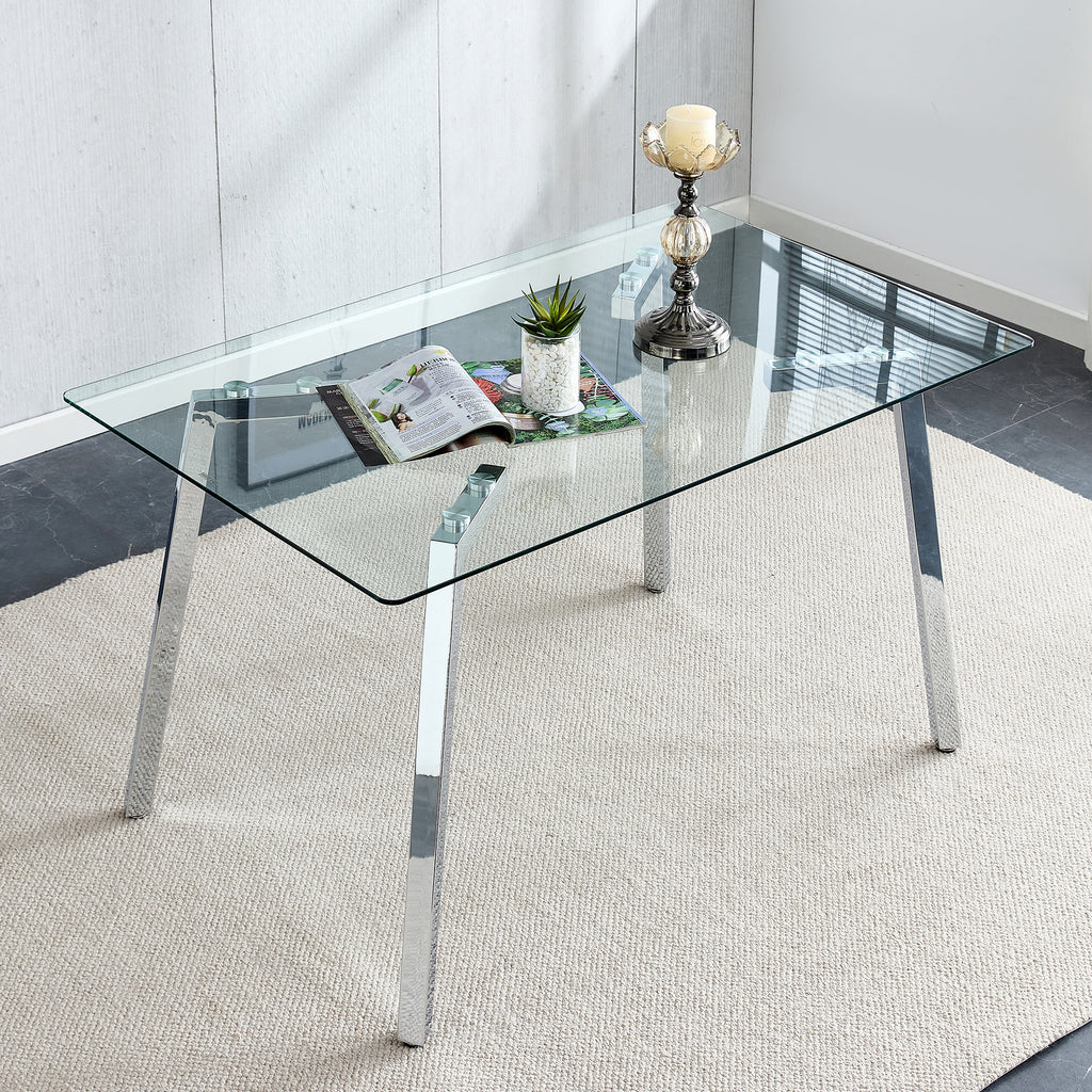 Glass tabletop enhances visual attractiveness of this dining table,making it simplistic but elegant.