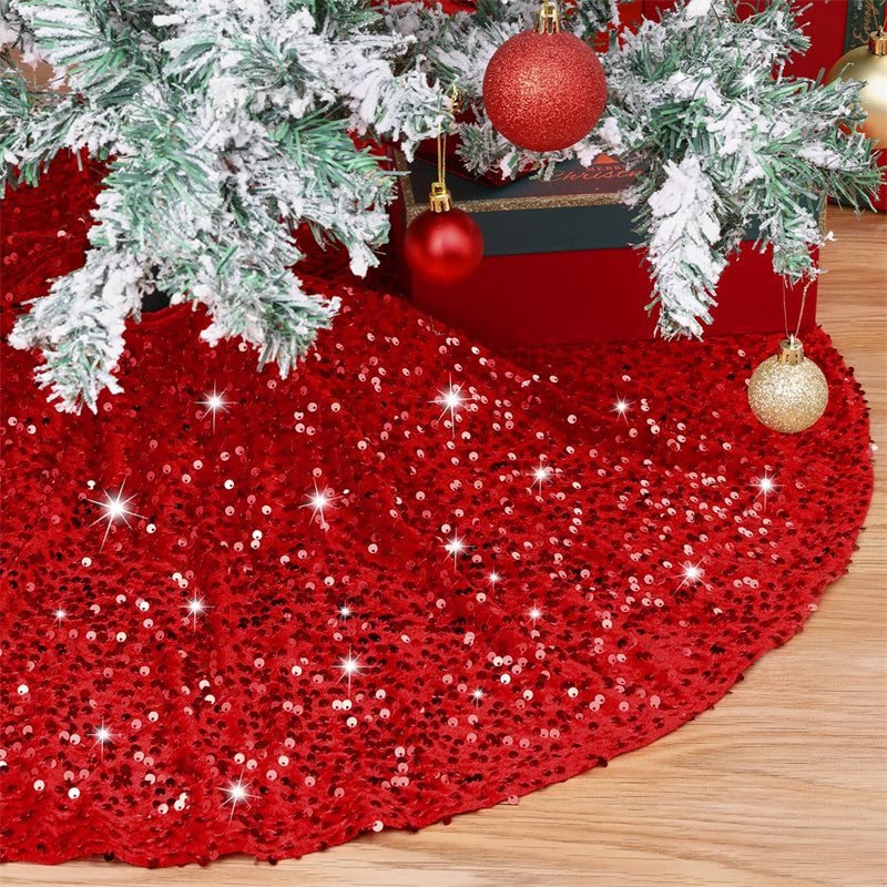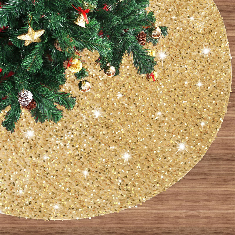 2.Material: Glitter tree skirt is made of velvet fabric with 5mm sequins embroidered on the surface. Create a luxurious and elegant look on your Xmas tree.
