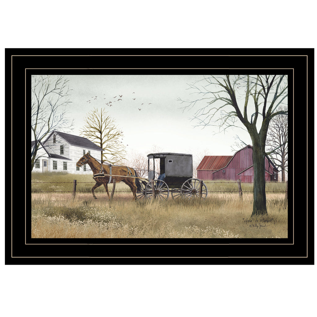 BJ405B-704G "Goin to Market" is a 15x11" decorative black framed print by artist Billy Jacobs. This artwork features a horse drawn Amish buggy going down a country road. This totally American Made wall decor item features an attractive frame, a textured canvas like finish so no glass is necessary and is ready to hang. •Textured Artwork with a 'rolled on' acid free acrylic coating to create a canvas painting effect. No glass is necessary.•Surface of the print has a fade resistant coating.•Arrives Ready to Hang•Woman Owned Business (WBE)•Handmade in the USA•Decorative Moulding adds natural beauty to the framed art.