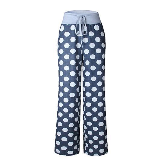 Slip into one of these polka-dotted pajamas before you slip into your bed... Listen to relaxing music and get carried away into the moonlit night and in the world of dreams... The pajamas are soft and cool so you can sleep well and dream a little longer...! They are slightly relaxed at the knee; come with drawstrings so you can keep it snug or loose and feel super cute and comfy all throughout the night... The waistband can be folded over to adjust should you wear them high or low...