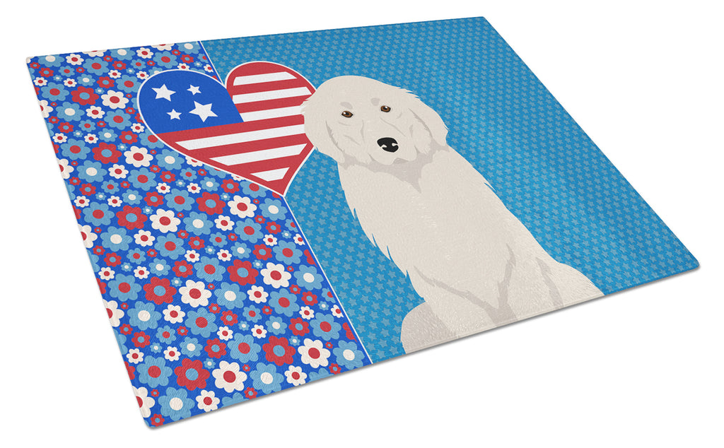 Glass Cutting Board featuring breed specific Great Pyrenees artwork. This Glass Cutting Board is from Caroline's Treasures collection USA Love America. Introduce your kitchen to the vibrant, large Decorative Glass Cutting Board from Caroline's Treasures. Crafted from resilient tempered glass, this board is not only a utilitarian necessity but also a colorful art piece. With its generous dimensions of 15 inches in height and 12 inches in length, it offers ample space for all your cutting needs. Every piece showcases captivating artwork from distinguished artists, bringing an aesthetic edge to your kitchen. Beyond its attractive design, this cutting board ensures your countertop stays pristine and unscathed, owing to its heat-resistant properties. Engineered with user convenience in mind, it features non-skid feet for stability, and rounded corners for additional safety. Its robust construction renders it virtually unbreakable, guaranteeing longevity. The board comes with protective feet bumpers, maintaining its position during use. This product is recommended to be hand washed only. Proudly printed and assembled in the United States, this cutting board exemplifies superior craftsmanship. With Caroline's Treasures' Decorative Glass Cutting Board, you're investing in a blend of functionality and artistic flair. This Cutting Board is from Caroline's Treasures Dogs category of products.