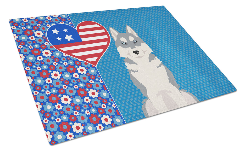 Glass Cutting Board featuring breed specific Siberian Husky artwork. This Glass Cutting Board is from Caroline's Treasures collection USA Love America. Introduce your kitchen to the vibrant, large Decorative Glass Cutting Board from Caroline's Treasures. Crafted from resilient tempered glass, this board is not only a utilitarian necessity but also a colorful art piece. With its generous dimensions of 15 inches in height and 12 inches in length, it offers ample space for all your cutting needs. Every piece showcases captivating artwork from distinguished artists, bringing an aesthetic edge to your kitchen. Beyond its attractive design, this cutting board ensures your countertop stays pristine and unscathed, owing to its heat-resistant properties. Engineered with user convenience in mind, it features non-skid feet for stability, and rounded corners for additional safety. Its robust construction renders it virtually unbreakable, guaranteeing longevity. The board comes with protective feet bumpers, maintaining its position during use. This product is recommended to be hand washed only. Proudly printed and assembled in the United States, this cutting board exemplifies superior craftsmanship. With Caroline's Treasures' Decorative Glass Cutting Board, you're investing in a blend of functionality and artistic flair. This Cutting Board is from Caroline's Treasures Dogs category of products.