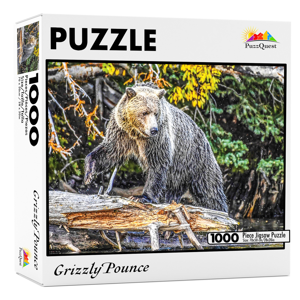 1.Grizzly Pounce 1000 Piece Fine Art Jigsaw Puzzle for Teens and Adults
