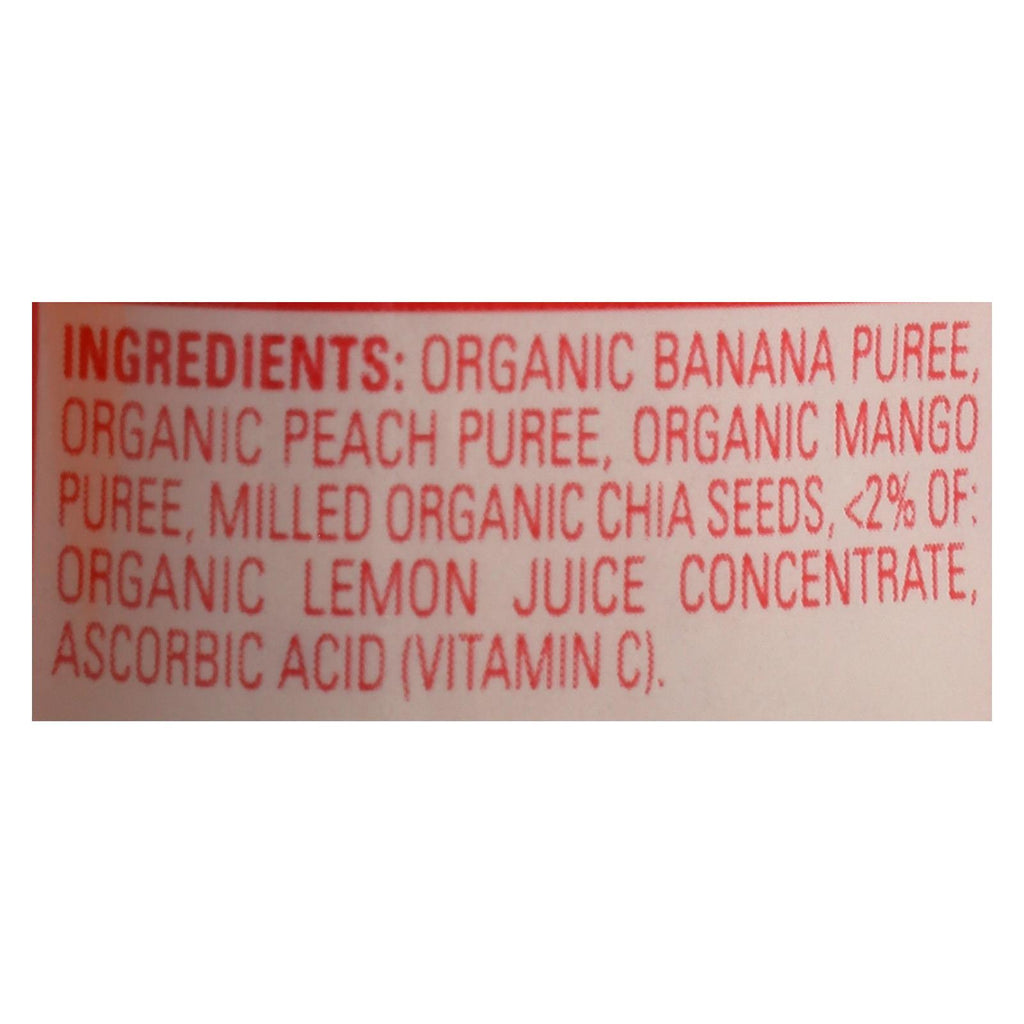 ingredients : organic banana puree;organic peach puree;organic mango puree;milled organic chia seeds;<2% of: organic lemon juice concentrate;ascorbic acid;vitamin c