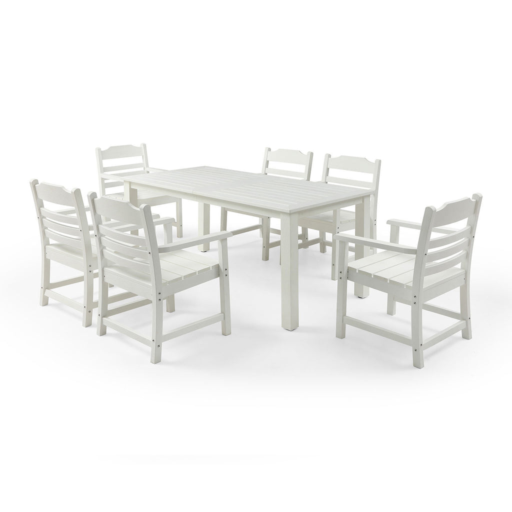 HIPS Patio Dining Table, 70.86",Pure white with Imitation wood grain textureThis table made with HIPS material, perfect for outdoor use.Outdoor dining table is all weather resistant, low maintenance required; color-fading free.Compared with ordinary table, the service life is longer, which means more money-saving.