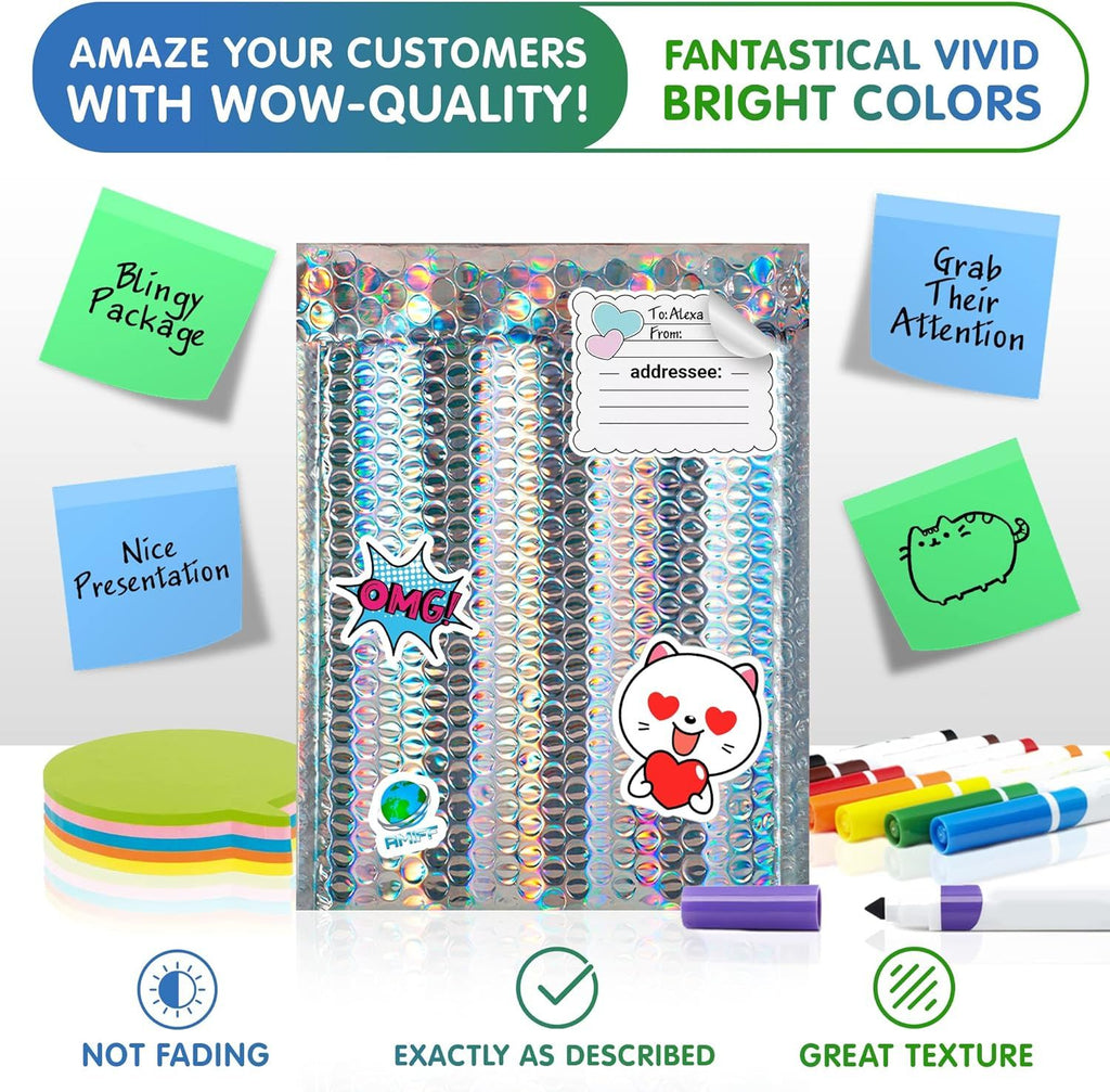 Holographic Bubble Mailers 7 x 11 Inch, Pack of 10 Glamour Bubble Mailers, Self-Seal Metallic Bubble Envelope, Lightweight Holographic Shipping Bags for Mailing Jewelry, Crafts