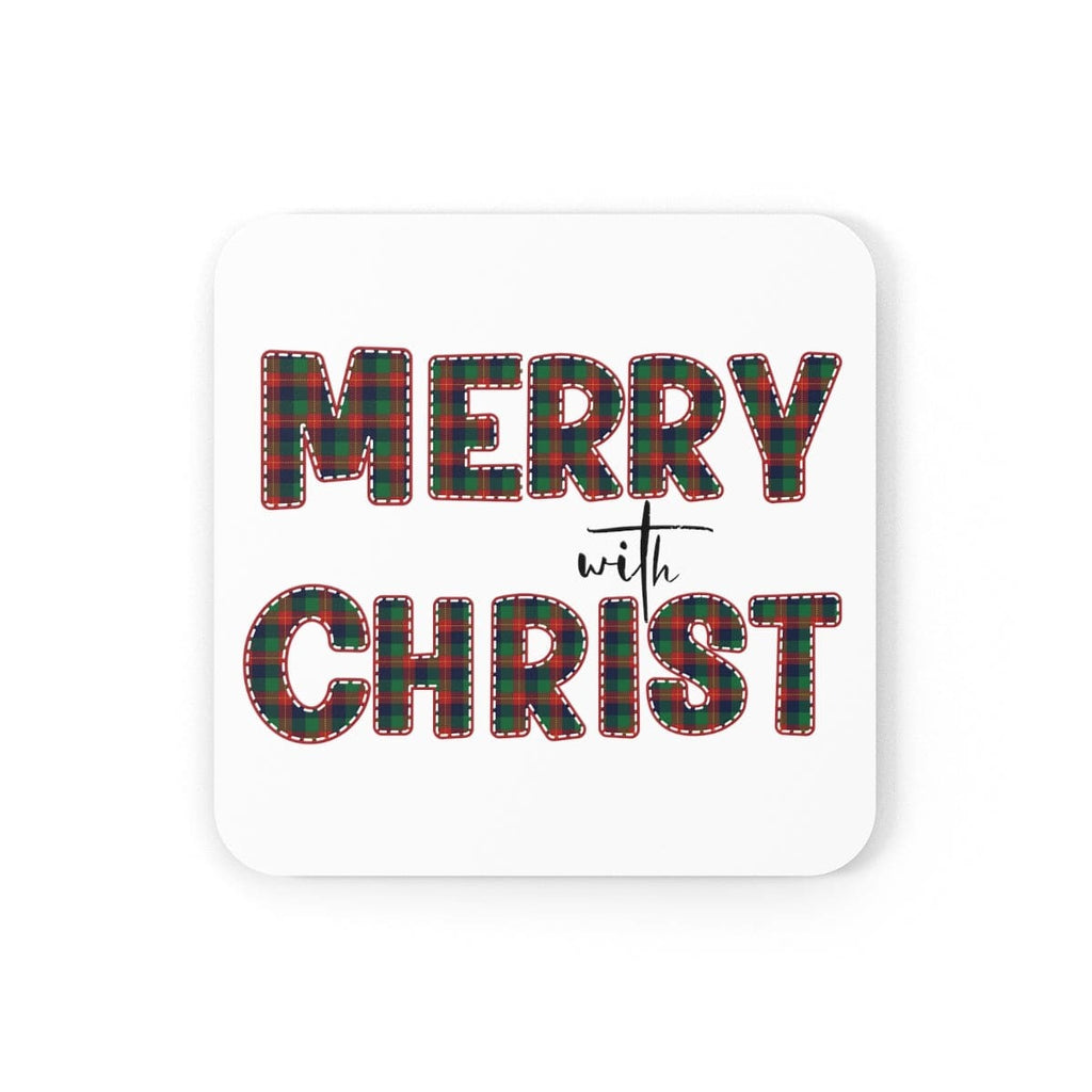 Home Decor, Coaster Set - 4 Piece Home/office, Merry With Christ, Red And Green Plaid Christmas Holiday Pattern Print