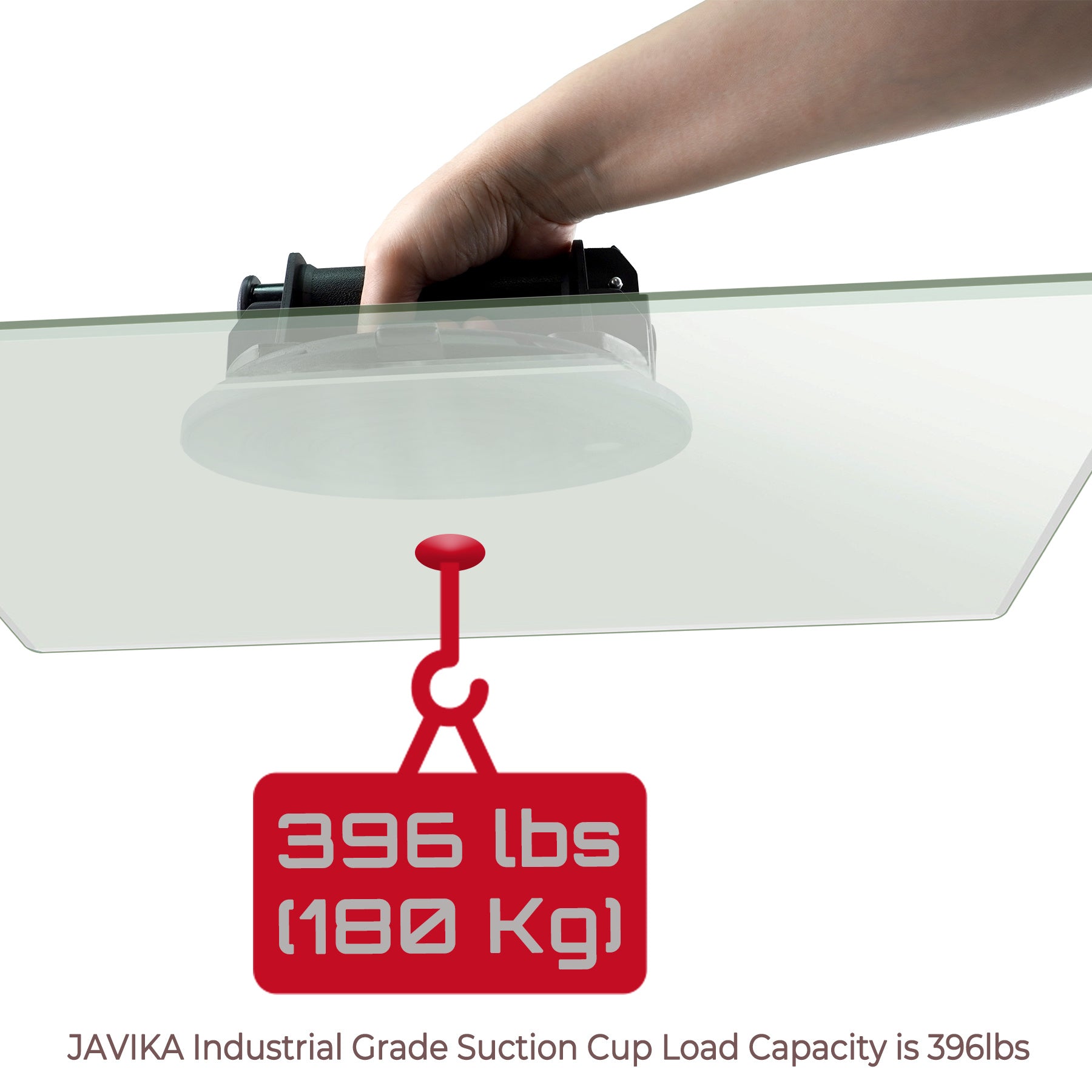 [Make Work Easier]JAVIKA industrial grade suction cup load capacity is 396lbs, handheld vacuum suction cups, widely used in a variety of materials, fast attachment to flat, smooth, nonporous surfaces like large tiles, rock slabs, flat glass, resin panels or steel panel.