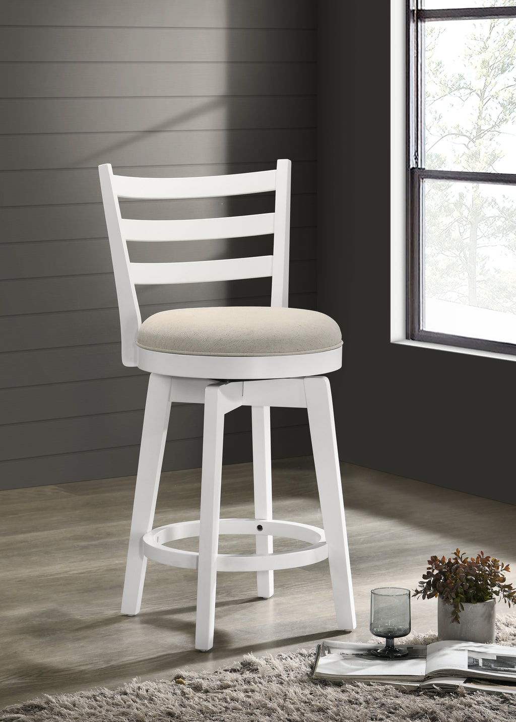 Joplin 20.5" White Ladder Back Counter Height Swivel Chair with Upholstered Seat