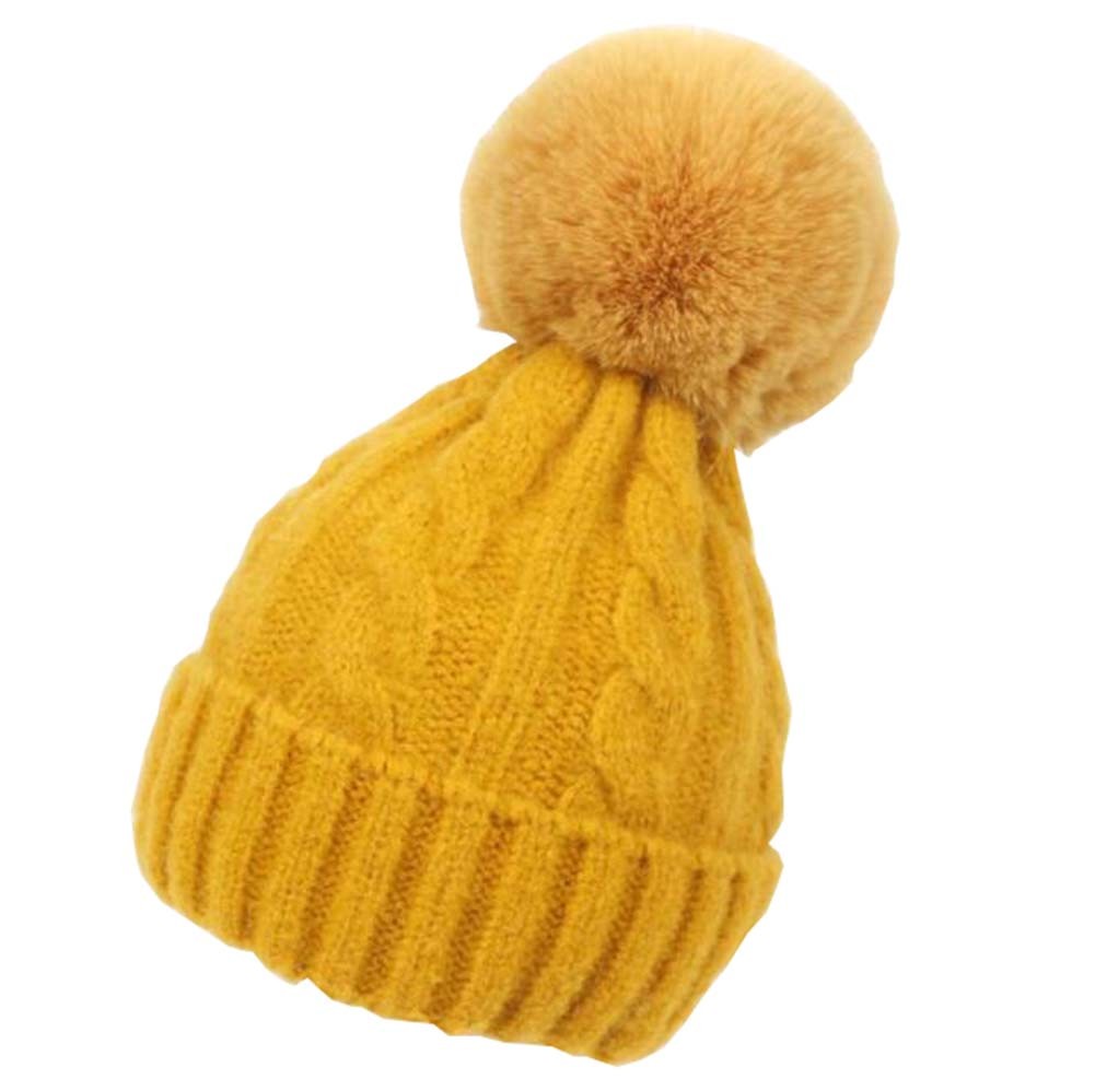 Kids Winter Ear Protect Knitting Hat Toddler Pom Pom Hat; Yellow