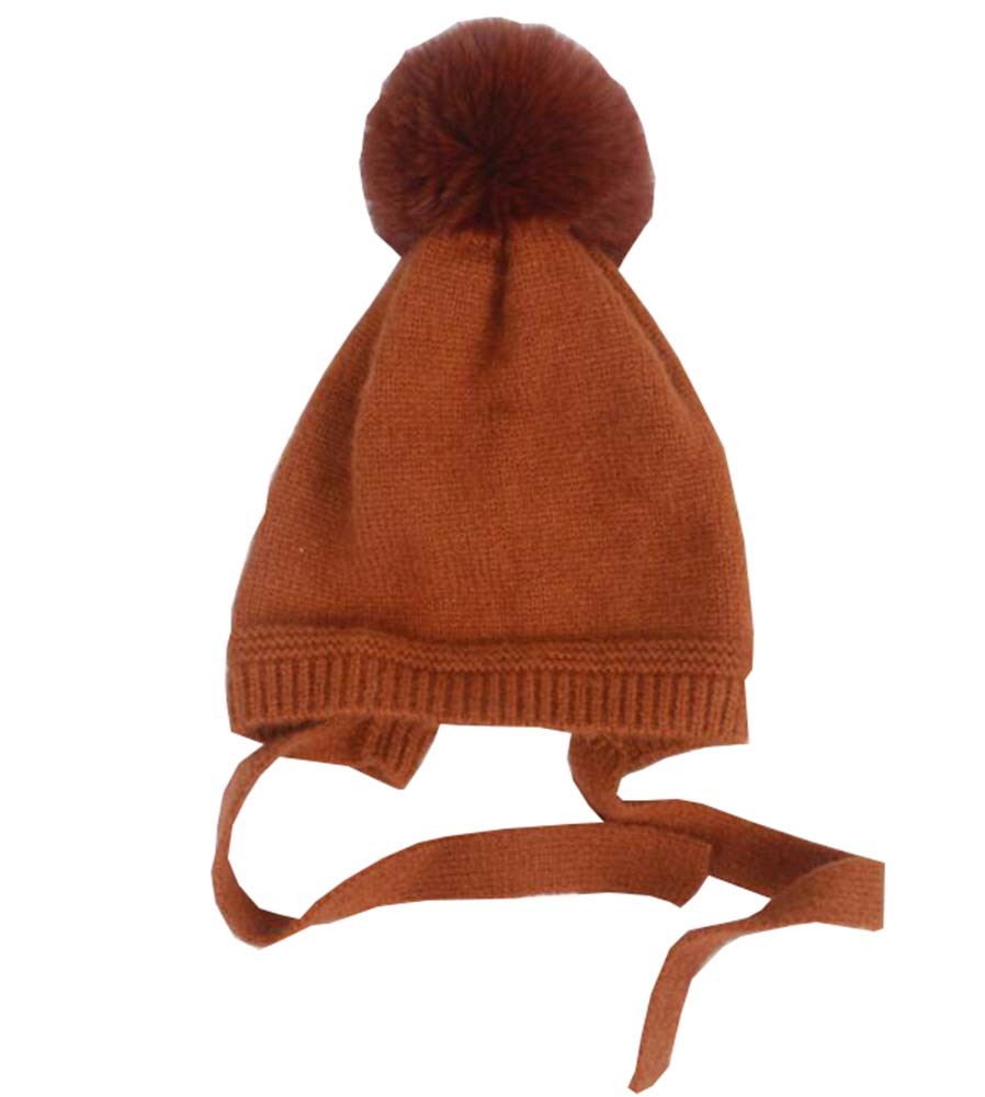 Kids Winter Lacing Hat Boys Girls Pompom Knit Hats; caramel