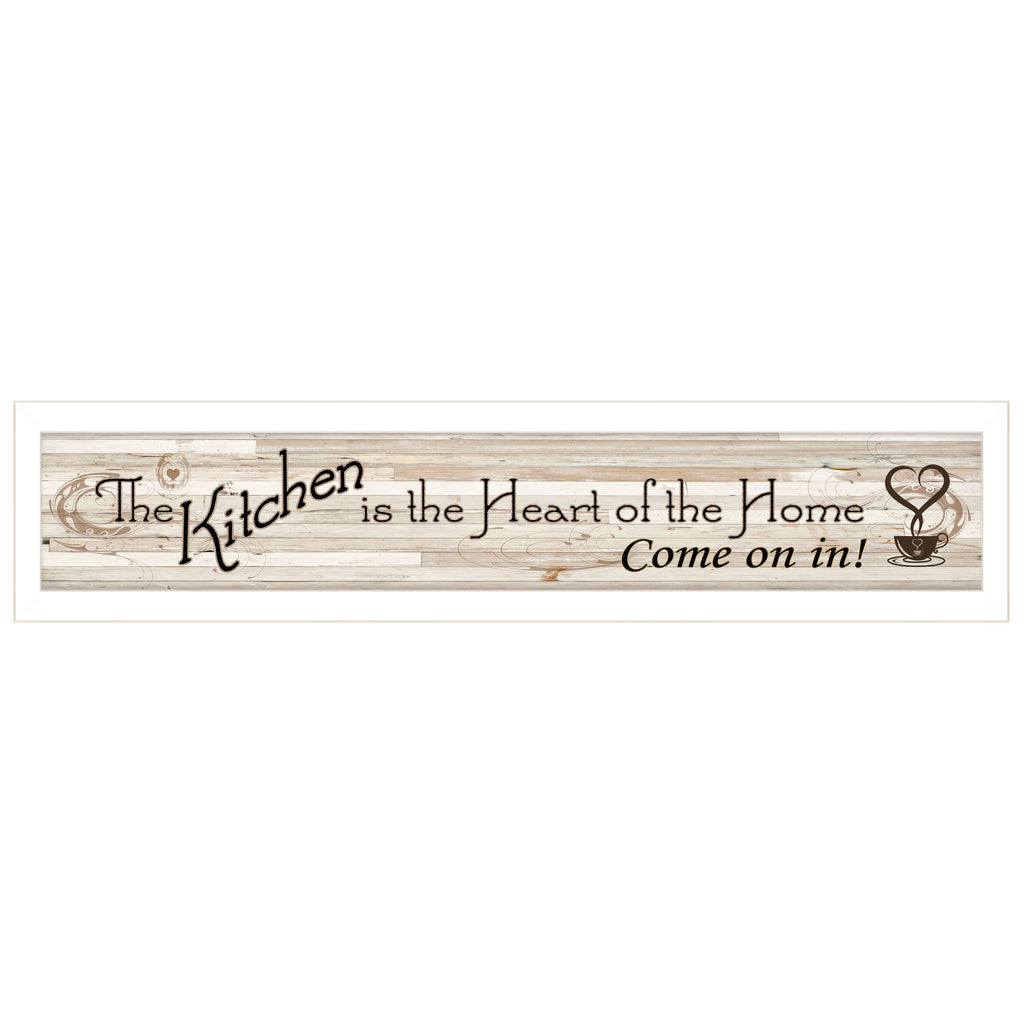 ME25-712W Kitchen Is The Heart of The Home by the designers at Trendy decor 4U, in a decorative 32 x 7 white frame. This popular horizontal framed art kitchen decor works great over doorways and windows. The surface of the print is textured with a fade resistant coating so no glass is necessary. Arrives ready to hang. •TEXTURED ARTWORK with a 'rolled on' acid-free acrylic coating to create a canvas painting effect.•UV PROTECTANT COATING protects artwork from fading. No glass is necessary.• MOULDING adds natural beauty to the framed art. Frame is keyholed for the easy hanging.•THIS FINE HOME DECOR piece made in the USA by Woman Owned Business (WBE) is a perfect gift for a friend or relative.