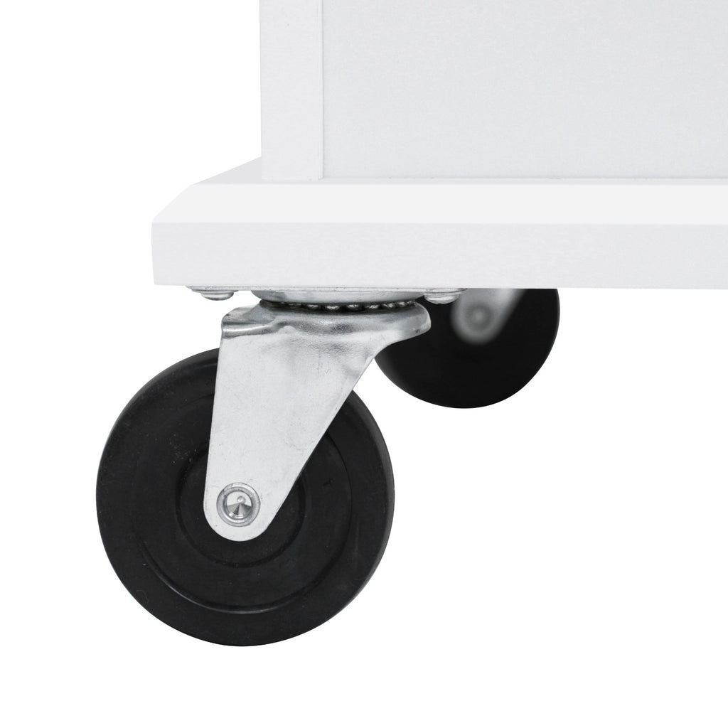Mobile&StationaryThe kitchen island is equipped with five smooth-rolling wheels, allowing for effortless mobility. Additionally, it features four sturdy solid wood cabinet feet and a central support plate.